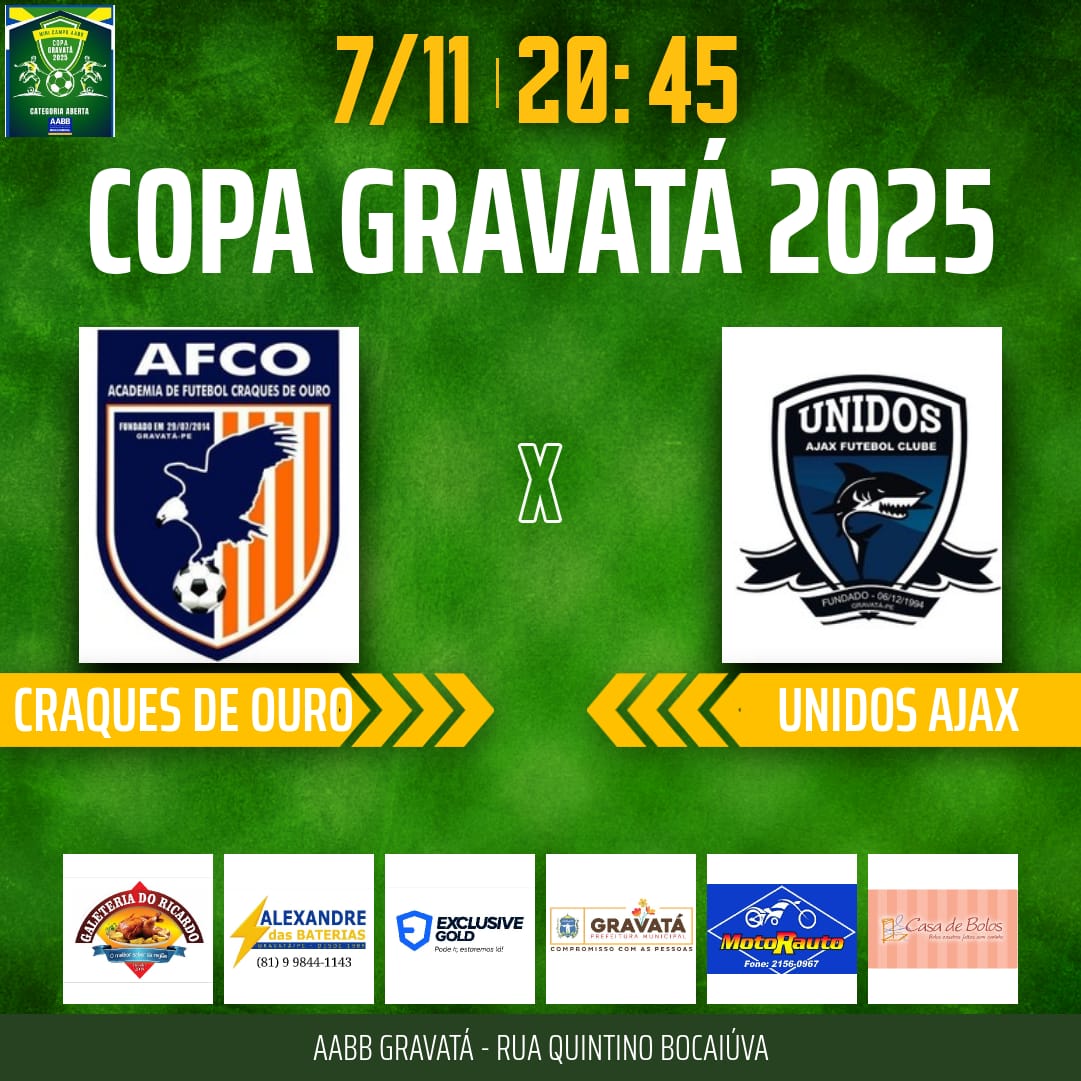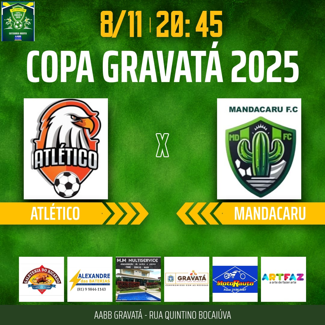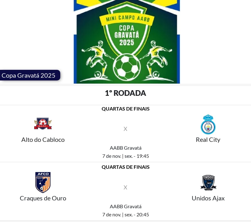 HOJE TEM A 1ª RODADA DAS QUARTAS DE FINAIS DA COPA GRAVATÁ 2025 NA AABB