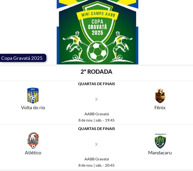 HOJE TEM A 2ª RODADA DAS QUARTAS DE FINAIS DA COPA GRAVATÁ 2025 NA AABB