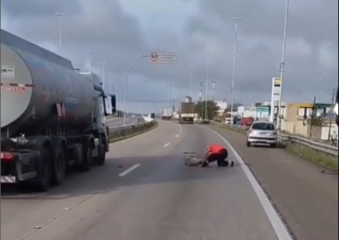 CAMINHÃO COM MOTORISTA AMARRADO PROVOCA INTERDIÇÃO TOTAL NA RODOVIA E QUE HÁ SUSPEITO DE EXPLOSIVOS NO INTERIOR DA CARRETA