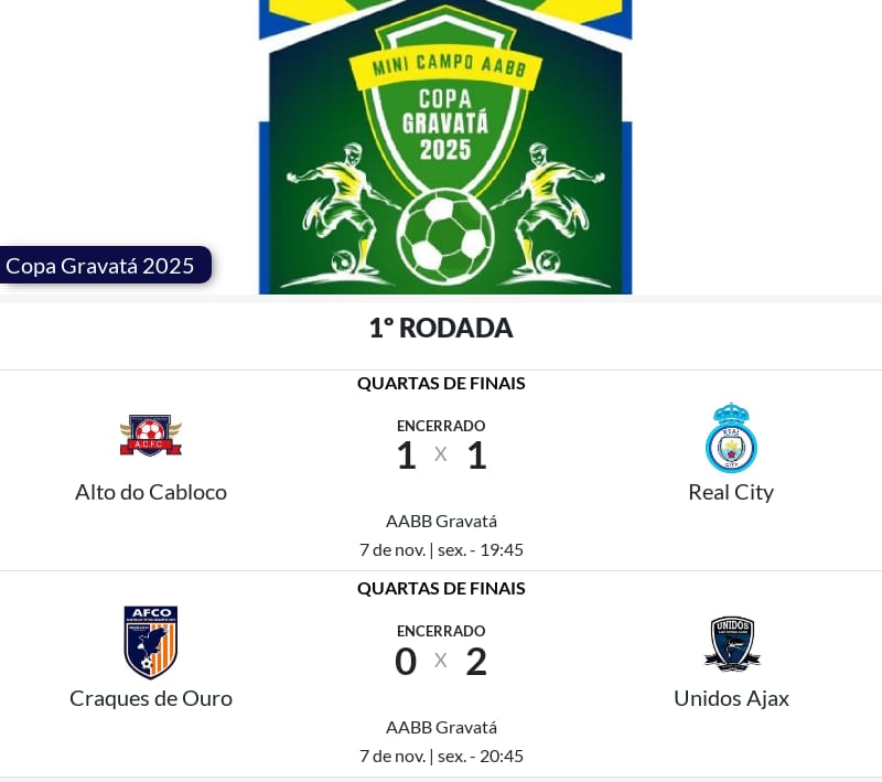 CONFIRA O RESULTADO DA 1ª RODADA DAS QUARTAS DE FINAIS DA COPA GRAVATÁ 2025 NA AABB