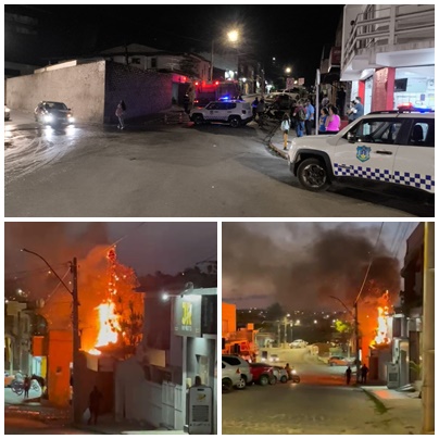 PÉ DE PINHEIRO PEGA FOGO NO CENTRO DA CIDADE DE GRAVATÁ NA NOITE DESTA SEGUNDA (10)