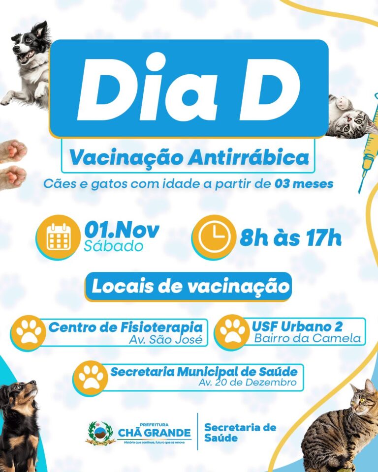 CHÃ GRANDE PROMOVE DIA D DE VACINAÇÃO ANTIRRÁBICA NO SÁBADO