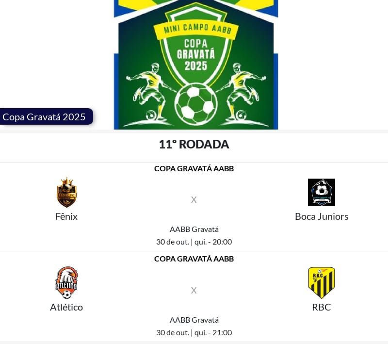 HOJE TEM A 11ª RODADA DA COPA GRAVATÁ 2025 NA AABB