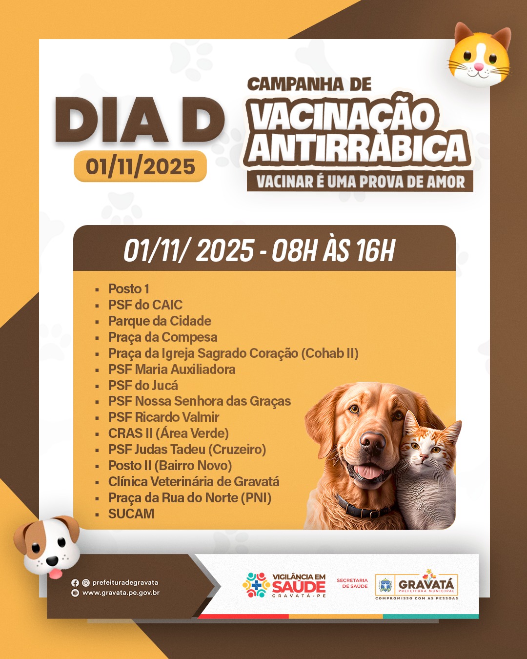 GRAVATÁ REALIZA DIA D DE VACINAÇÃO ANTIRRÁBICA ANIMAL NESTE SÁBADO, 1º DE NOVEMBRO