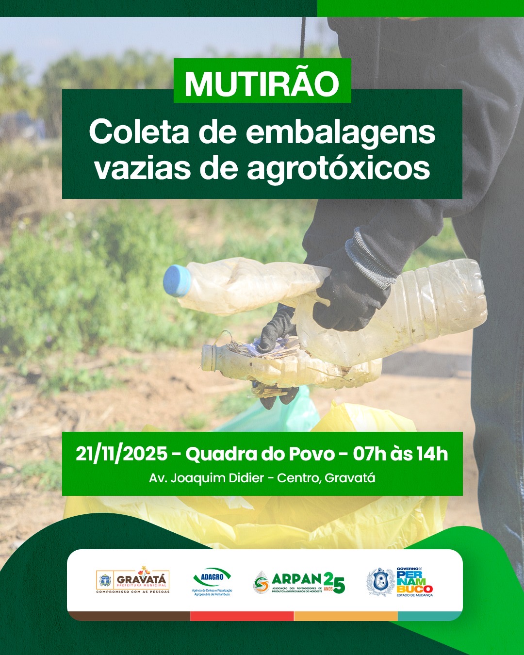 JUNTE-SE A NÓS PELO CAMPO SUSTENTÁVEL: PREFEITURA DE GRAVATÁ REALIZA MUTIRÃO DE COLETA DE EMBALAGENS VAZIAS DE AGROTÓXICOS
