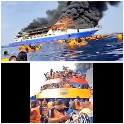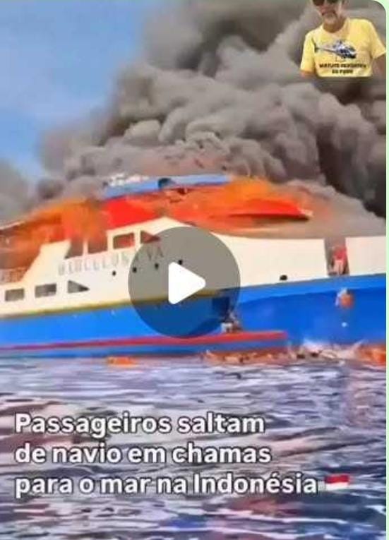 INCÊNDIO EM NAVIO NA INDONÉSIA DEIXA PELO MENOS 5 PESSOAS MORRERAM E MAIS DE 500 PESSOAS FORAM RESGATADAS