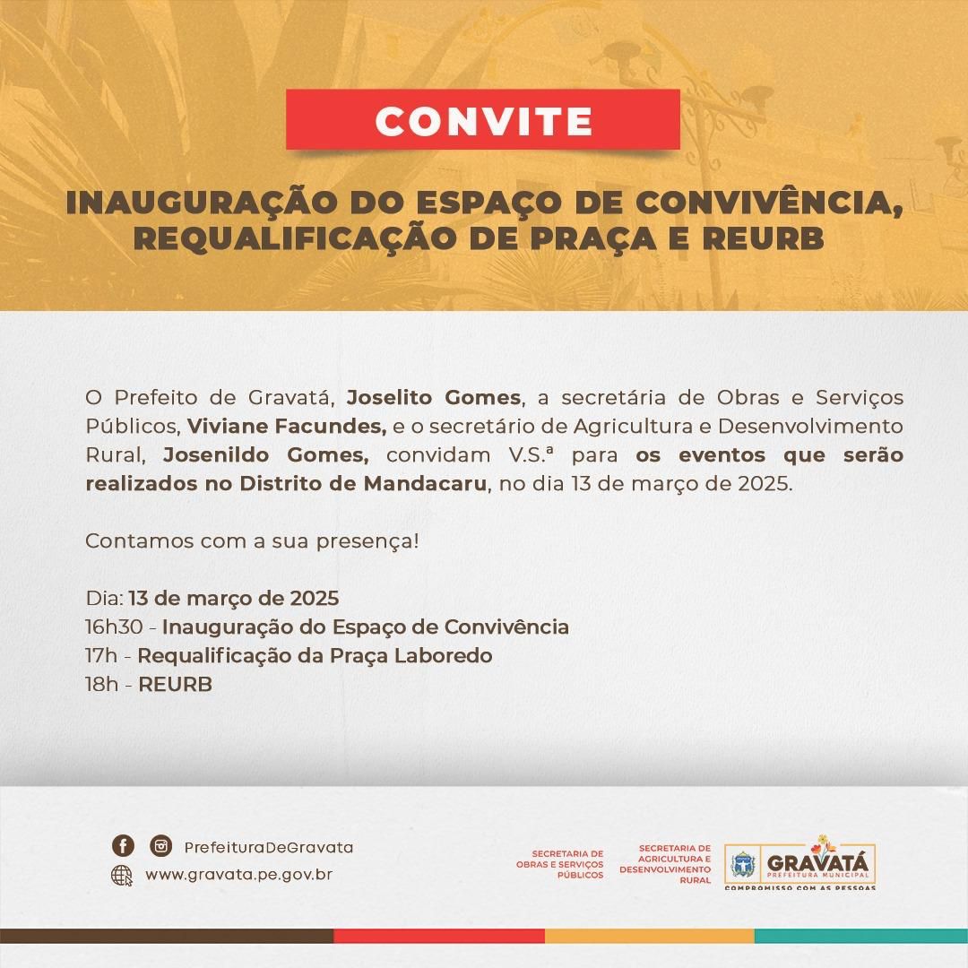 PREFEITURA DE GRAVATÁ INAUGURA O ESPAÇO DE CONVIVÊNCIA, REQUALIFICAÇÃO DE PRAÇA E REURB NO DISTRITO DE MANDACARU